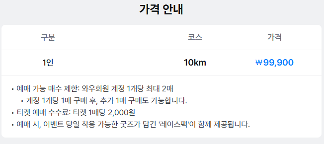 💸 참가비: 99,900원 + 예매 수수료 2,000원 🎁 총합 약 101,900원 (와우 멤버십 비용 제외)